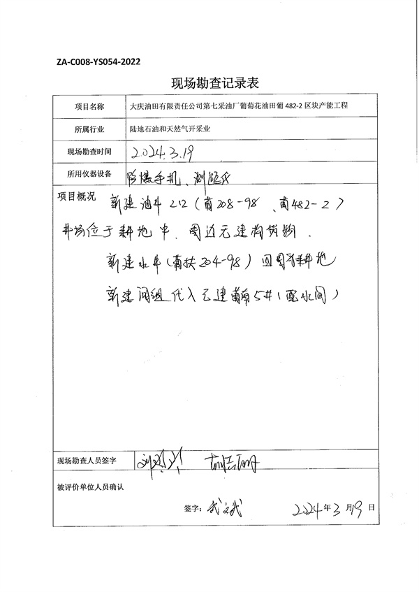 大慶油田有限責任公司第七采油廠葡萄花油田葡482-2區塊產能工程安全驗收評價報告