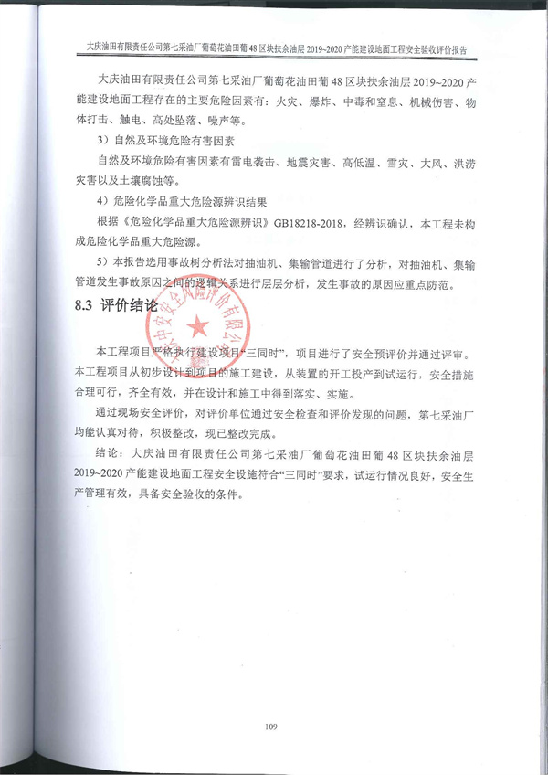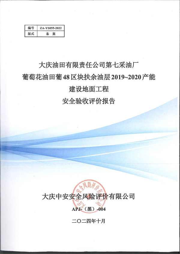 大慶油田有限責任公司第七采油廠葡萄花油田葡48區塊扶余油層2019~2020產能建設地面工程安全驗收評價報告 |