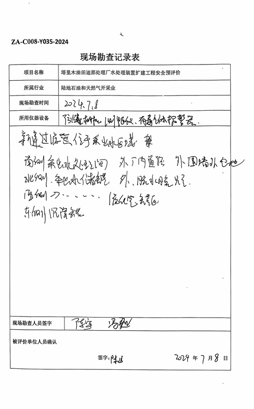 對迪那2處理站擴建位置周邊環(huán)境進行檢查。 |