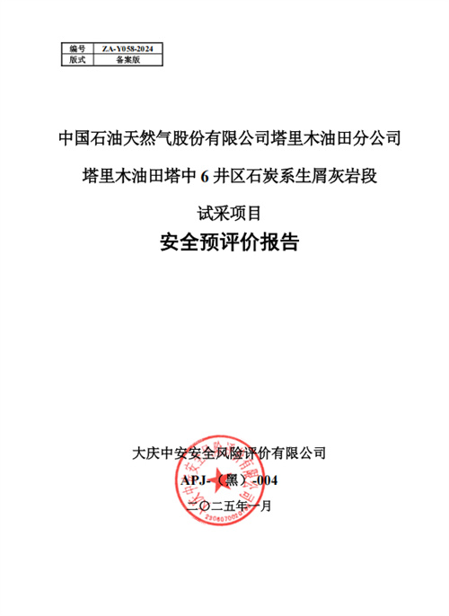 中國石油天然氣股份有限公司塔里木油田分公司塔里木油田塔中6井區石炭系生屑灰巖段試采項目安全預評價報告