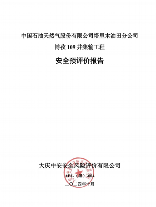 中國石油天然氣股份有限公司塔里木油田分公司博孜109井集輸工程安全預評價報告