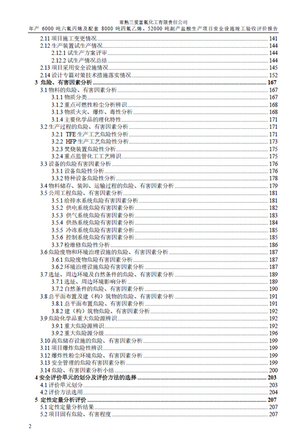 常熟三愛富氟化工有限責任公司年產6000噸六氟丙烯及配套8000噸四氟乙烯、52000噸副產鹽酸生產項目安全設施竣工驗收評價報告 |