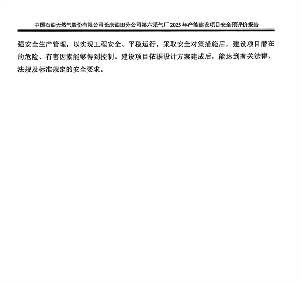 中國石油天然氣股份有限公司長慶油田分公司第六采氣廠2025年產(chǎn)能建設(shè)項目安全預評價報告 |