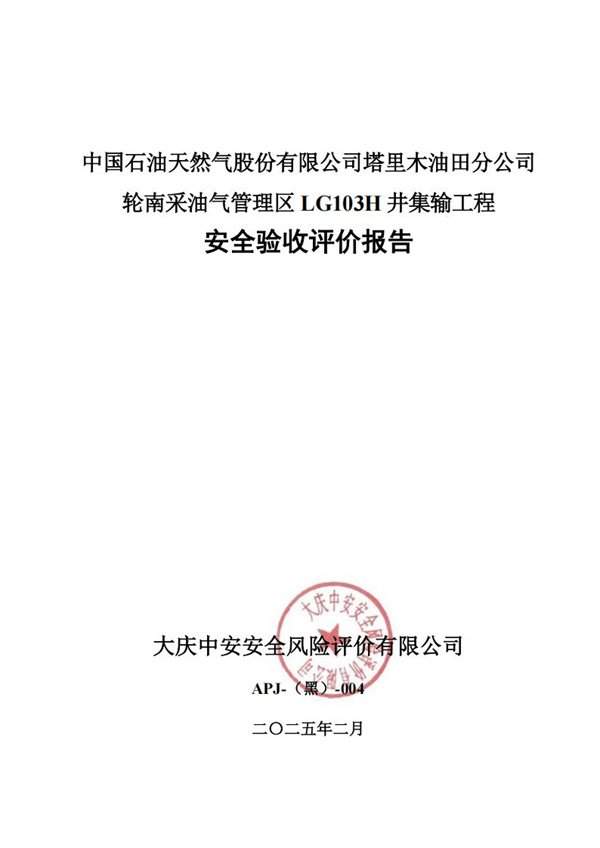 中國石油天然氣股份有限公司塔里木油田分公司輪南采油氣管理區LG103H井集輸工程安全驗收評價 |