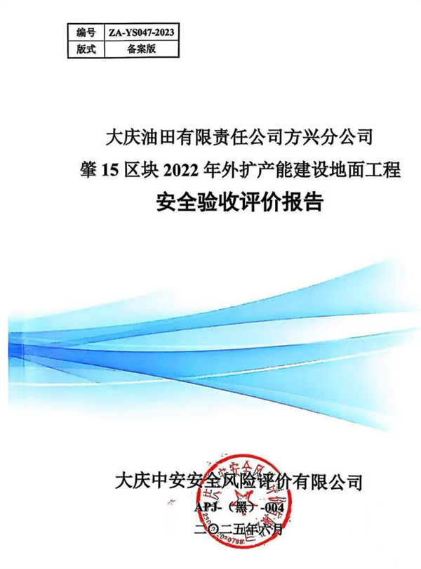 大慶油田有限責任公司方興分公司肇15區塊2022年外擴產能建設地面工程安全驗收評價