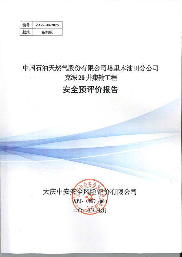 中國(guó)石油天然氣股份有限公司塔里木油田分公司克深20井集輸工程安全預(yù)評(píng)價(jià)報(bào)告