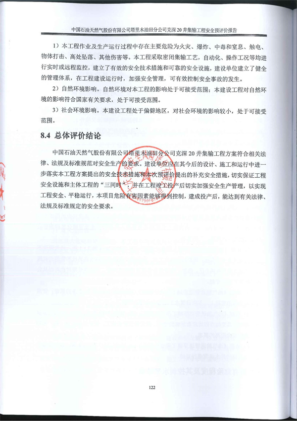 中國(guó)石油天然氣股份有限公司塔里木油田分公司克深20井集輸工程安全預(yù)評(píng)價(jià)報(bào)告 |