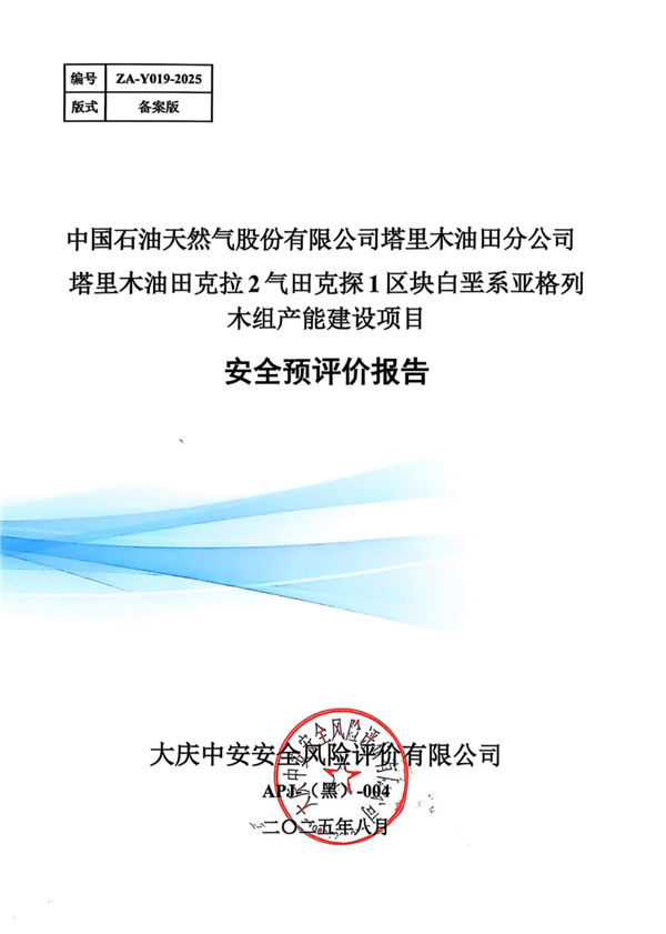 中國石油天然氣股份有限公司塔里木油田分公司塔里木油田克拉2氣田克探1區塊白堊系亞格列木組產能建設項目安全預評價報告 |
