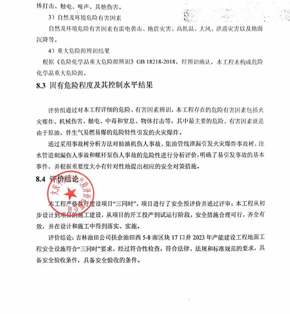吉林油田公司扶余油田西5-8南區塊17口井2023年產能建設工程地面工程安全驗收評價報告 |
