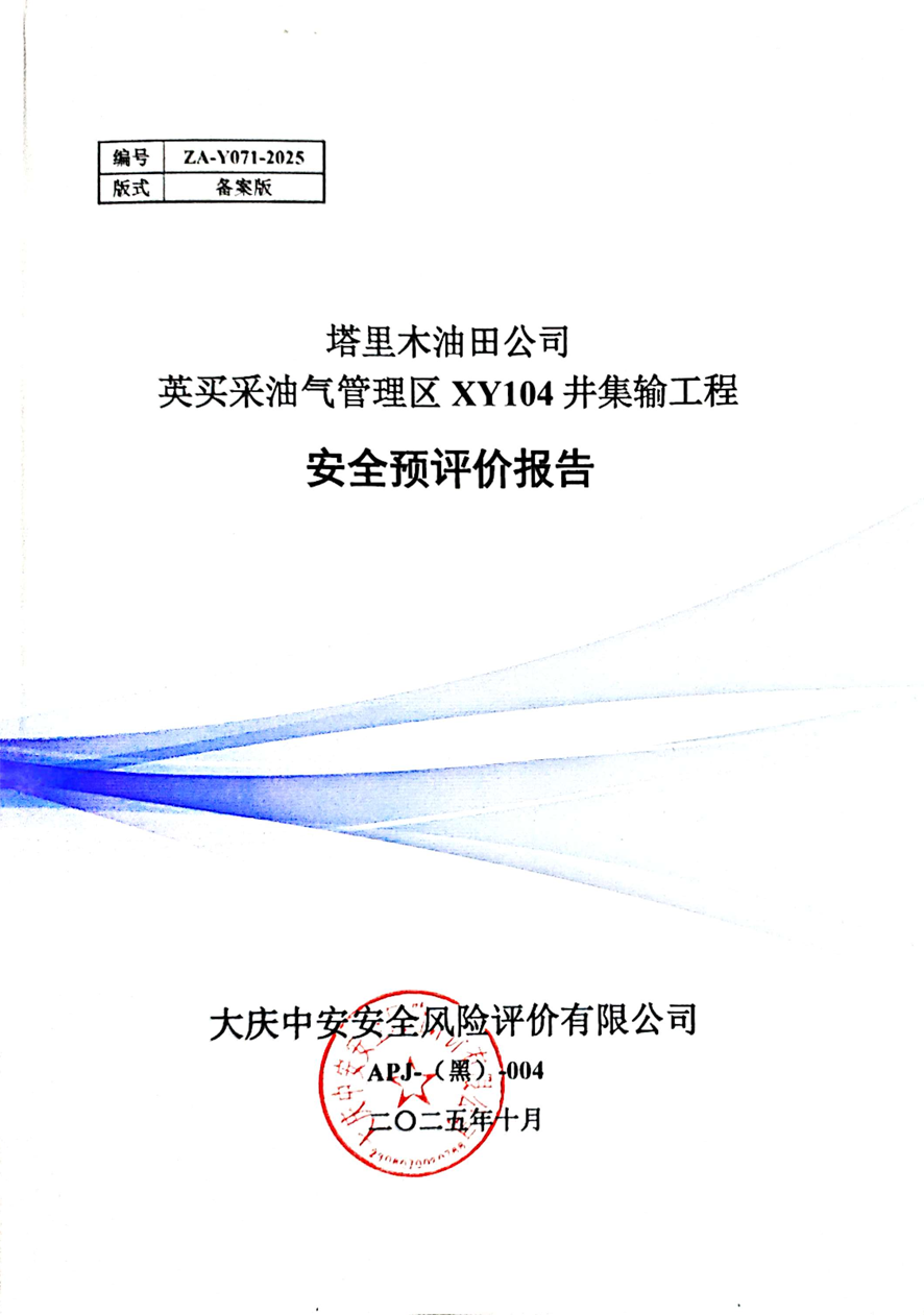 塔里木油田公司英買采油氣管理區XY104井集輸工程安全預評價報告 |