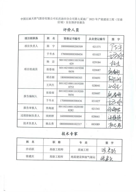 中國石油天然氣股份有限公司長慶油田分公司第七采油廠2023年產能建設工程(甘肅區域)安全預評價 |