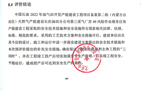 中國石油2022年油氣田開發(fā)產(chǎn)能建設(shè)工程項(xiàng)目備案第二批(內(nèi)蒙古自治區(qū))天然氣產(chǎn)能建設(shè)長慶油田分公司第三采氣廠蘇49風(fēng)險(xiǎn)作業(yè)服務(wù)區(qū)塊產(chǎn)能建設(shè)工程采取的安全技術(shù)措施和安全設(shè)施符合國家相關(guān)法律、法規(guī)、標(biāo)準(zhǔn)、規(guī)范的要求。采用的工藝技術(shù)方案和安全措施可行。建設(shè)單位應(yīng)在其今后的設(shè)計(jì)、施工和運(yùn)行中進(jìn)一步落實(shí)建設(shè)方案提出的安全技術(shù)措施和本次預(yù)評價(jià)提出的補(bǔ)充安全措施,確實(shí)保證工程安全設(shè)施和主體工程的“三同時(shí)”,并在工程竣工投產(chǎn)后切實(shí)加強(qiáng)安全生產(chǎn)管理,以實(shí)現(xiàn)工程安全、平穩(wěn)運(yùn)行,建成投產(chǎn)后可達(dá)到安全生產(chǎn)的目的。 |