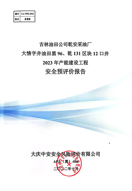 吉林油田公司乾安采油廠大情字井油田黑96、乾131區(qū)塊12口井2023年產(chǎn)能建設(shè)工程安全預(yù)評(píng)價(jià)報(bào)告