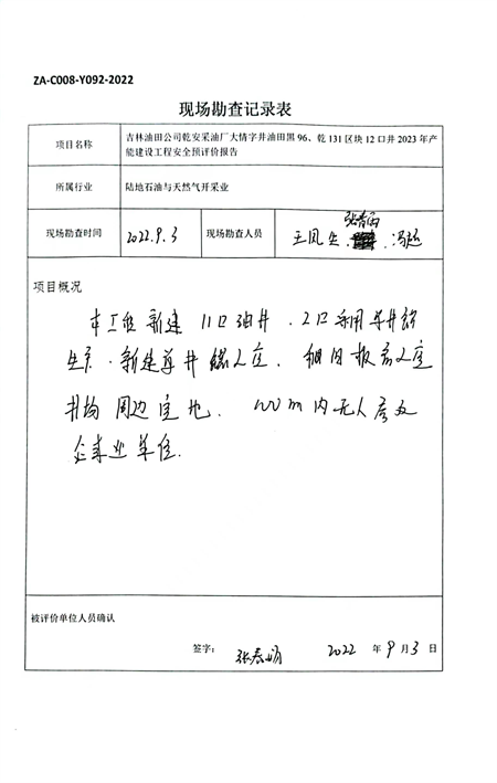 吉林油田公司乾安采油廠大情字井油田黑96、乾131區(qū)塊12口井2023年產(chǎn)能建設(shè)工程安全預(yù)評(píng)價(jià)報(bào)告 |