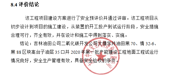 吉林油田公司二氧化碳開發公司大情字井油田黑70、情32-6、黑88區塊高臺子油層35口井2020年第一批產能建設工程地面工程安全驗收評價報告 |