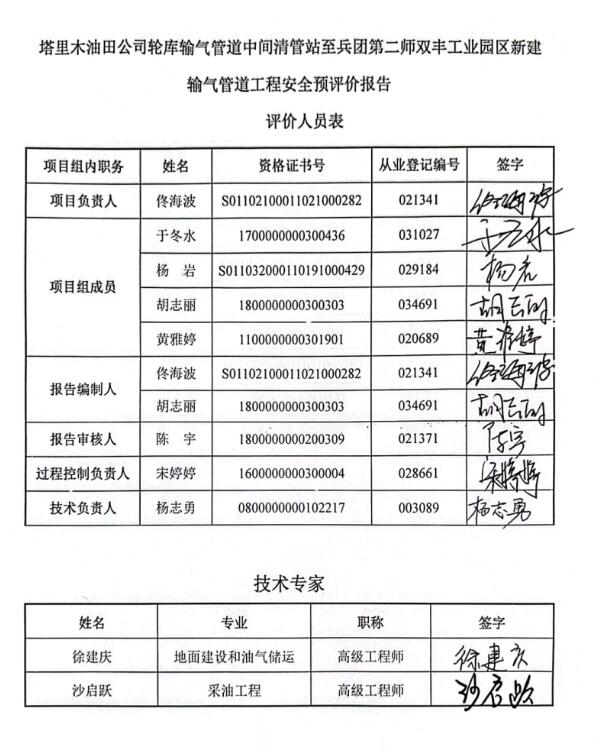塔里木油田公司輪庫輸氣管道中間清管站至兵團(tuán)第二師雙豐工業(yè)園區(qū)新建輸氣管道工程安全預(yù)評價報(bào)告 |