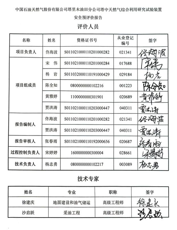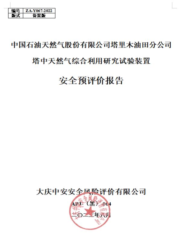 中國石油天然氣股份有限公司塔里木油田分公司塔中天然氣綜合利用研究試驗裝置安全預評價報告 |