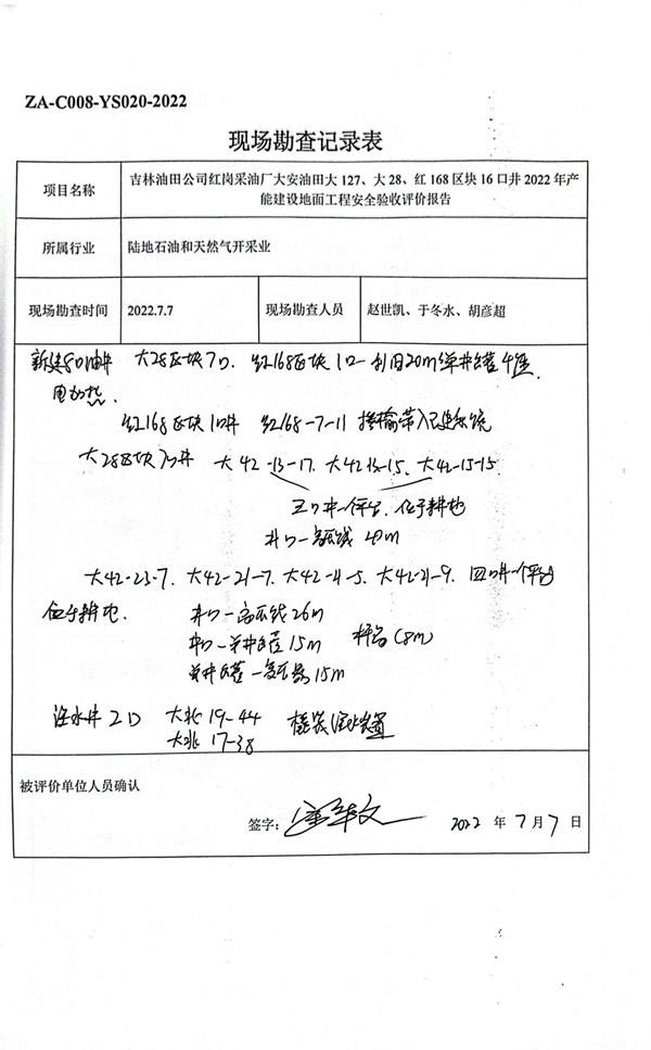 吉林油田公司紅崗采油廠大安油田大127、大28、紅168區塊16口井2022年產能建設地面工程安全驗收評價報告 |