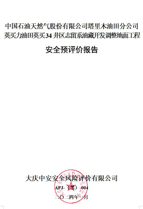 中國石油天然氣股份有限公司塔里木油田分公司英買力油田英買34井區(qū)志留系油藏開發(fā)調(diào)整地面工程安全預(yù)評(píng)價(jià)報(bào)告 |