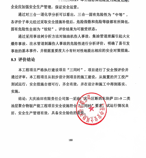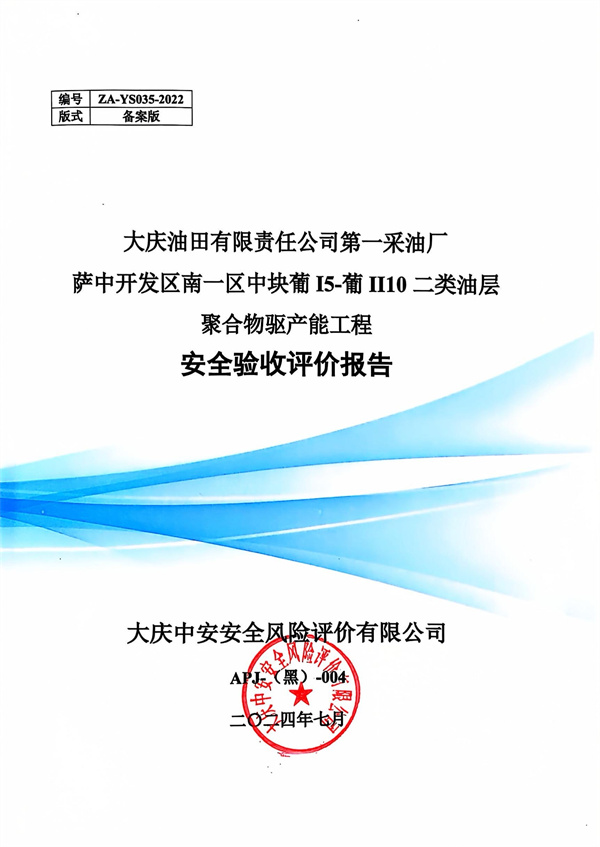 大慶油田有限責任公司第一采油廠薩中開發區南一區中塊葡I5-葡II10二類油層聚合物驅產能工程安全驗收評價 |